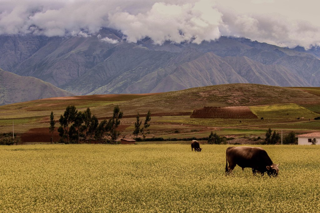 Una de las paradas fue en la salinera de Maras, el guía se bajo de la combi y nosotros atrás. El iba caminando rápido, porque, como pasa en todos los tours, ya estábamos tarde y teníamos que apurarnos. Medio recién levantada de la siesta entre parada y parada veo este paisaje y no pude, contenerme. Como me iba a ir sin sacarle una foto? Los deje irse, me perdí la primera parte de la explicación del lugar y la verdad no me importo. Me hubiera quedado mirando esta vista y sacando fotos, de una vaquita sola, de la casa sola, horizontal, vertical, cualquier cosa hasta que ya no sepa a que mas sacarle. Pero siento que alguien me estaba mirando y era el guía, que me estaba esperando y demorando al grupo. Solo pude sacar esta foto. Mientras caminaba rápido a donde estaba el grupo, me prometí no hacer nunca un tour a menos que sea necesario.