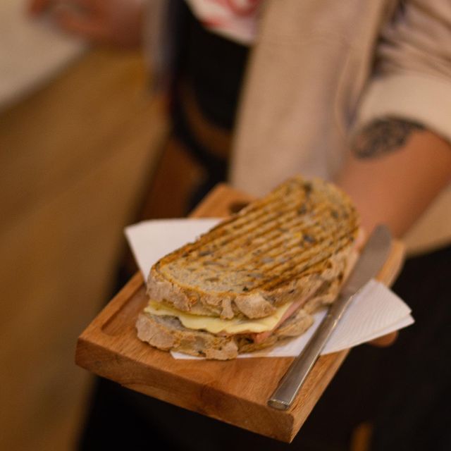 Este es un lugar tiene varios locales, este está cerca de plaza San Martin en Retiro. Y este local es un lugar que es bárbaro para home office y además tiene una ventana en donde podes comprar cosas al paso, como porciones de budines, medialunas, palmeritas y sandwiches. También es bueno contar que tiene café de especialidad que tuestan ellos mismos, así que también es una buena opción para llevar a la plaza.